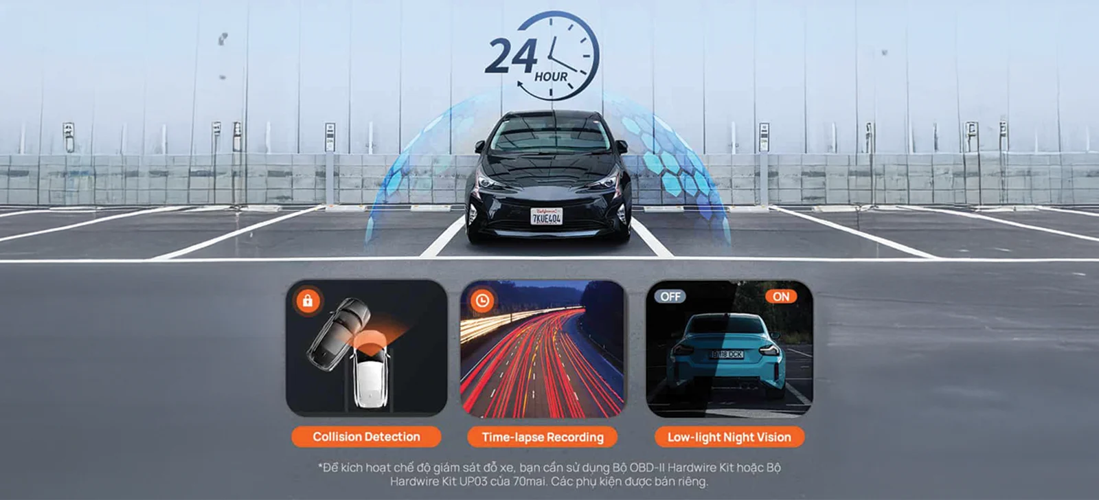 Camera 70mai M310 Plus hỗ trợ tính năng giám sát đỗ xe 24/7
