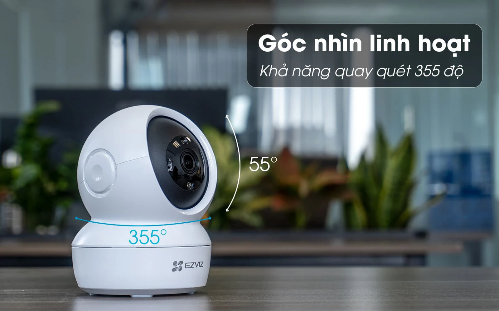 Ngoài thiết kế linh hoạt thì camera c6n còn được trang bị khả năng xoay quét 360 độ thông minh cho tầm nhìn rộng toàn cảnh mà không cần phải lắp hệ thống camera phức tạp, khi phát hiện chuyển động nó có thể xoay ngan 355 độ và xoay dọc 55 độ theo dõi. Bạn cũng có thể tùy chỉnh góc nhìn thông qua ứng dụng dễ dàng.
