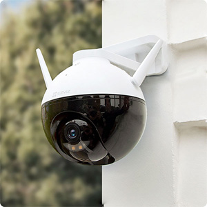 Một điểm thông minh ở sản phẩm này chính là khả năng chủ động bảo vệ tránh xâm nhập. Camera Ezviz ngoài trời C8W được trang bị đèn LED và còi hú. Ngay khi phát hiện có kẻ xâm nhập, thiết bị sẽ tự động hú còi và nhấp nháy hai đèn chiếu để răn đe kẻ xâm nhập.