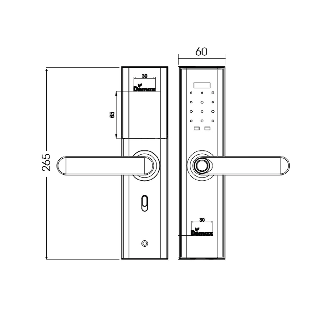 Demax EL266 AC có kích thước 60×265 mm, phù hợp cho cửa dày 35–90 mm và đố cửa rộng trên 100 mm. Khóa được làm từ hợp kim kẽm cao cấp, thép chống gỉ SUS 304 và nhựa ABS chống cháy, đảm bảo độ chắc chắn và tính thẩm mỹ. Kiểu dáng sang trọng, hiện đại, dễ dàng hòa hợp với mọi không gian nội thất.