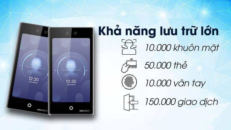 • Lưu trữ 10.000 khuôn mặt, 10.000 vân tay, 50.000 thẻ