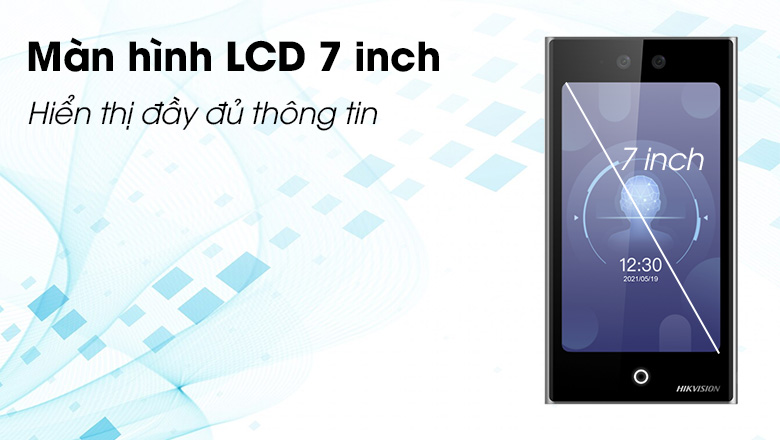 Máy chấm công khuôn mặt được trang bị màn hình LCD 7 inch cùng với độ phân giải 2.0 megapixel của camera giúp hiển thị chấm công rõ ràng và dễ dàng theo dõi.