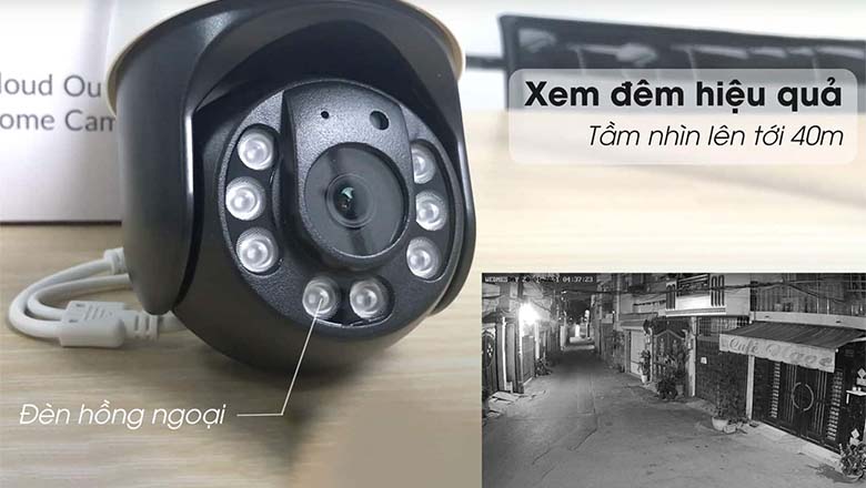 Ngoài ra, với 6 đèn hồng ngoại công suất lớn được tích hợp sẵn giúp cho hình ảnh quay được ban đêm cực nét và rõ ràng với khoảng cách lên đến 40m, cho phép bạn theo dõi trọn vẹn tất cả hình ảnh ngay từ khoảng cách xa và rộng.