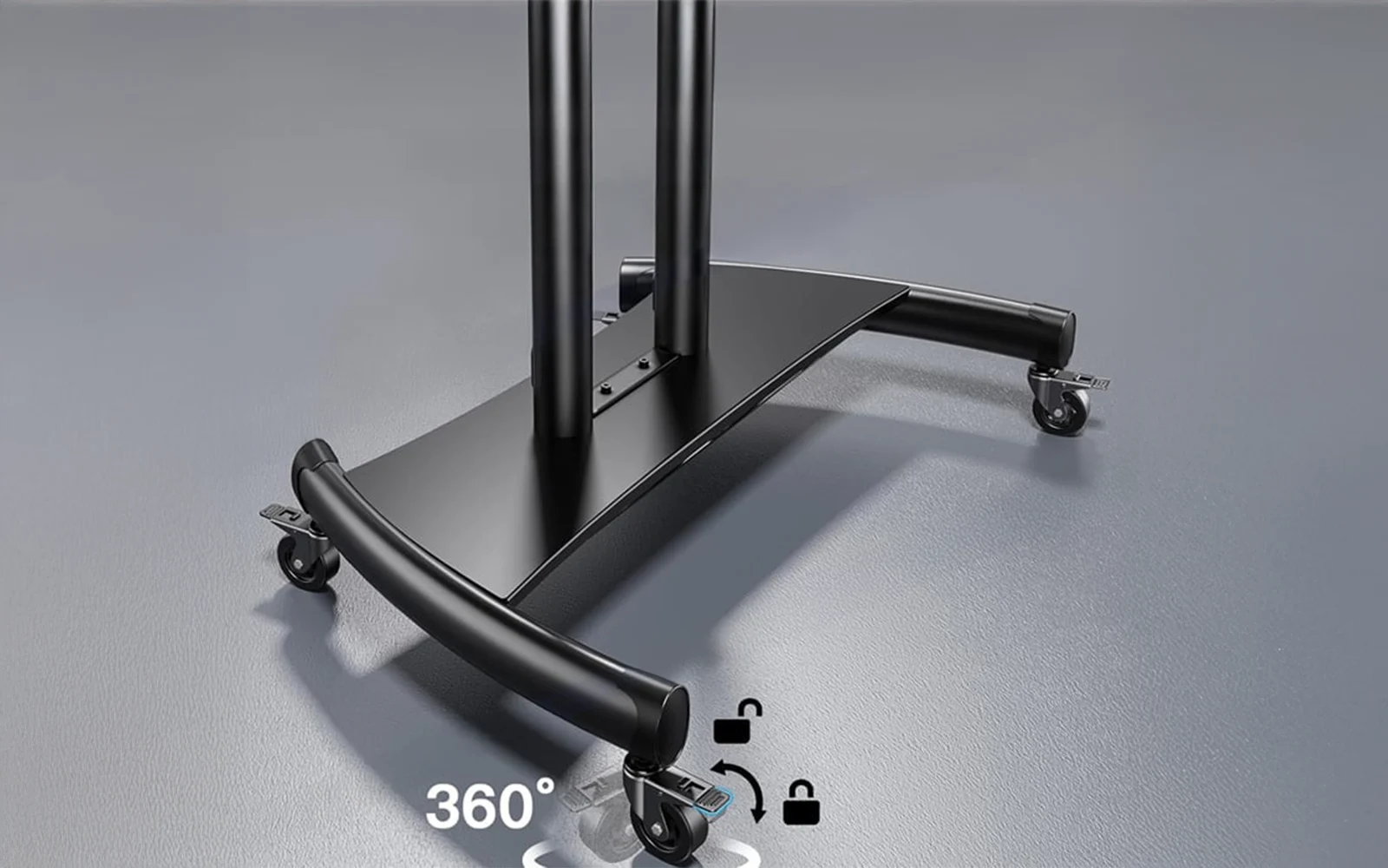 Bánh xe có khóa chốt an toàn, đảm bảo tivi đứng vững khi trình chiếu hoặc xem phim.
