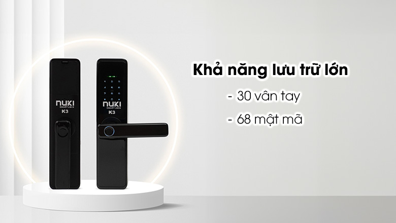 Dòng khóa thông minh vừa mới được ra mắt, vậy nên K3 có khả năng lưu trữ vừa phải là 30 vân tay và 68 mật khẩu. Đi kèm theo bộ khóa là 2 thẻ từ và 2 chìa khóa.