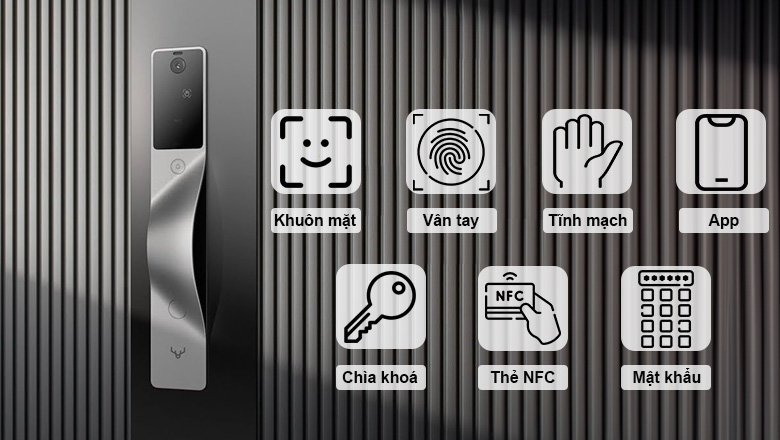 • Mở khóa: Khuôn mặt, vân tay, mã số, thẻ NFC, chìa khóa, app