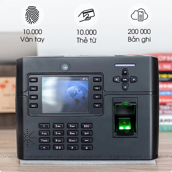 Máy có khả năng quản lý đến 10.000 dấu vân tay, 10.000 thẻ cảm ứng, password với 20.000 lần "chấm công mỗi ngày" tổng bộ nhớ lên đến 200.000 bản ghi check IN/OUT.