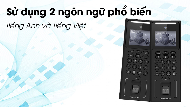 Để mang đến sự tiện lợi cho khách hàng, máy chấm công Hikvision được hỗ trợ 2 ngôn ngữ phổ biến là Tiếng Anh và Tiếng Việt dễ dàng sử dụng.