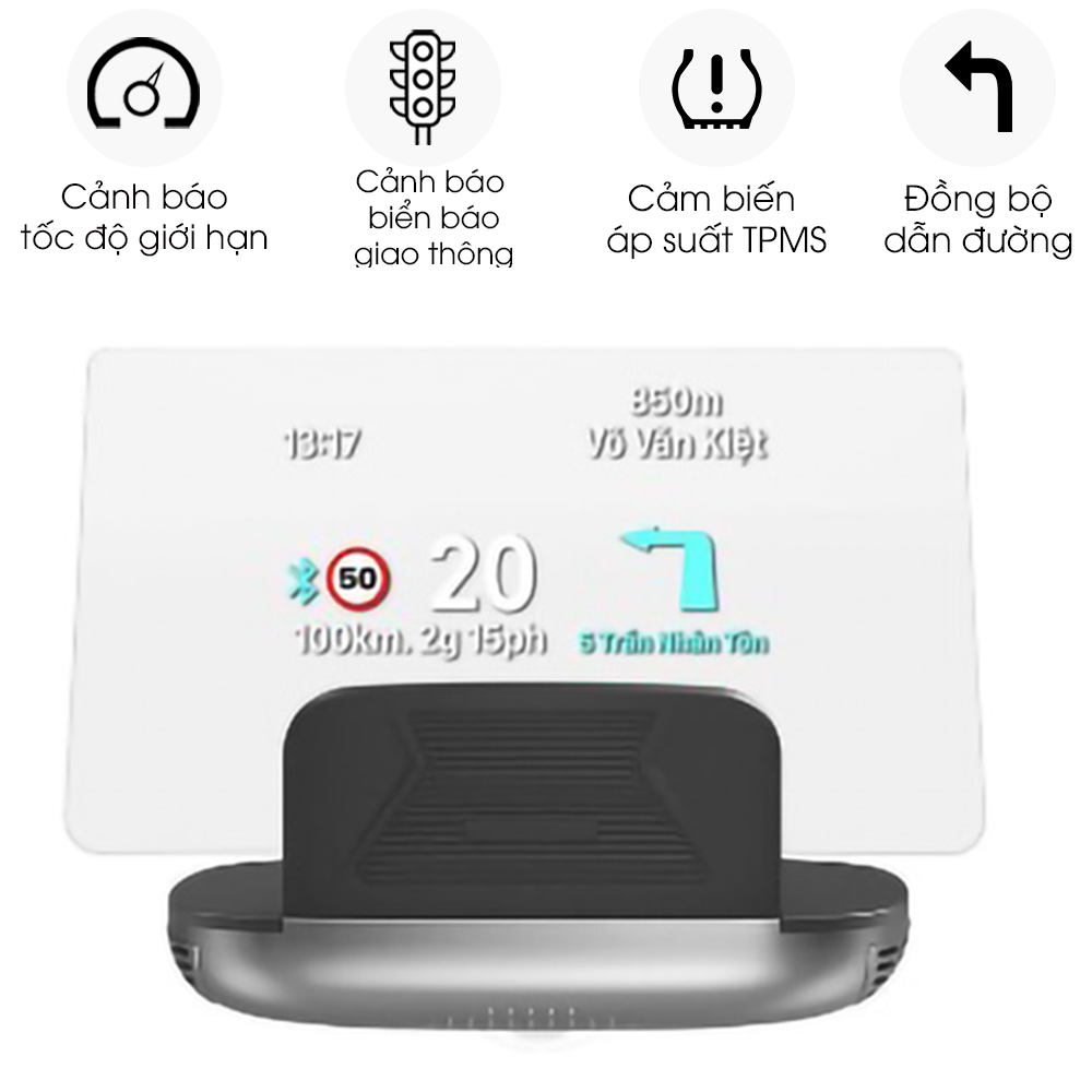 Khi kết nối thiết bị với điện thoại qua ứng dụng VIETMAP HUD bạn sẽ nhân được cảnh báo tín hiệu giao thông bằng giọng nói: