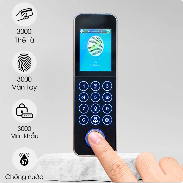 • Dung lượng: 5.000 vân tay, 5.000 thẻ, 5.000 mật khẩu.